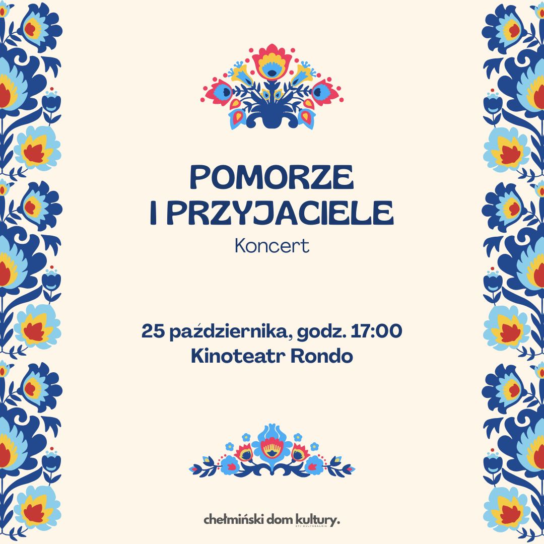 Już tradycyjnie, w październiku, zapraszamy na koncert „Pomorze i Przyjaciele”. Na scenie Kinoteatru RONDO wystąpią Zespół Pieśni i Tańca „Pomorze” wraz z zaproszonym gościem – w tym roku będzie to Zespół Pieśni i Tańca Ziemi Kutnowskiej!